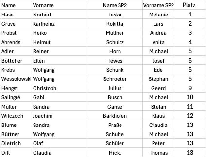 • Doppel „Spiel um Platz 3“ Trostrunde (4. Platz) gesamt 12. Platz