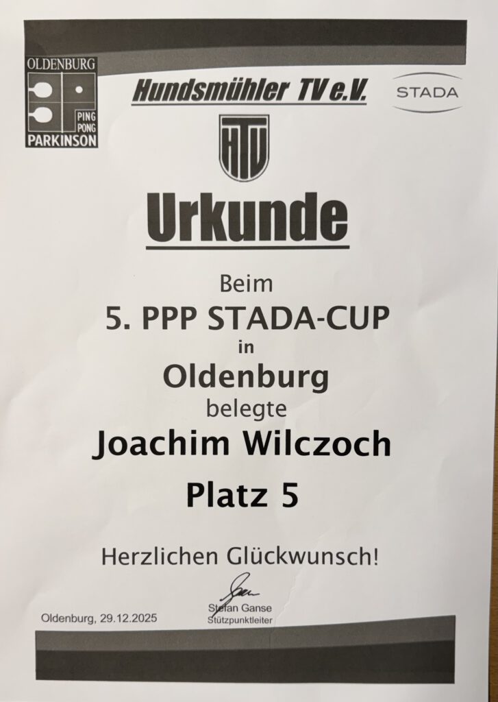 „Unser Willi ist der Beste“, denn er ist mit 4:2 Siegen 5. im 5. StadaCup gestern in Oldenburg geworden – großartig 👏👏👏 Kumpel!👍