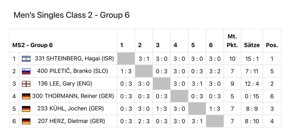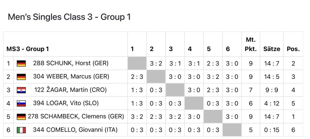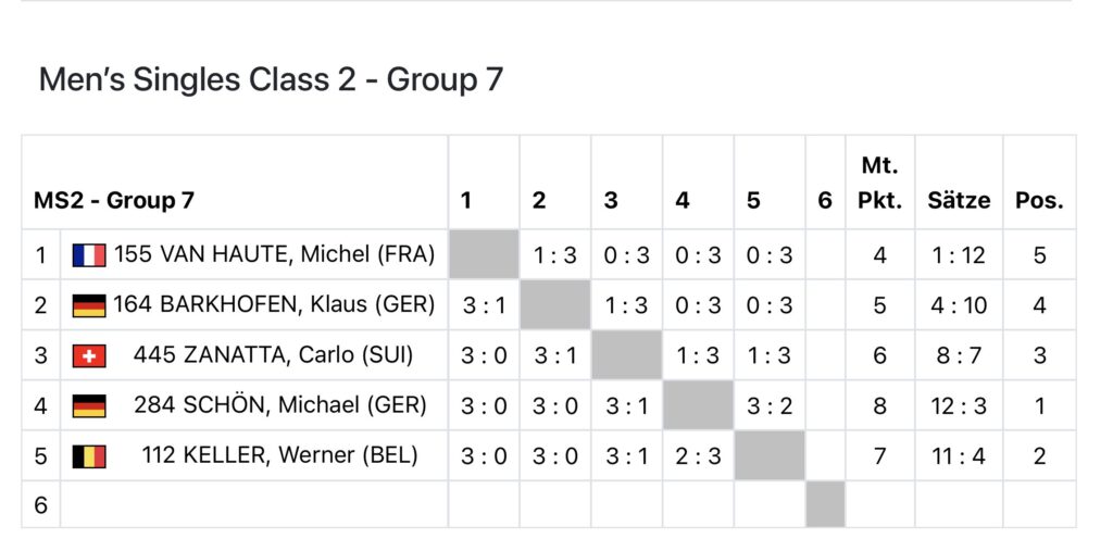 Somit ergaben sich für uns nachfolgende Ergebnisse: Ede ist weiter in der Hauptrunde der Klasse 3. Reiner und Klaus haben durch ihre Gruppenplatzierungen leider nur die Trostrunde der Klasse 2 erreicht. Hier die Details: