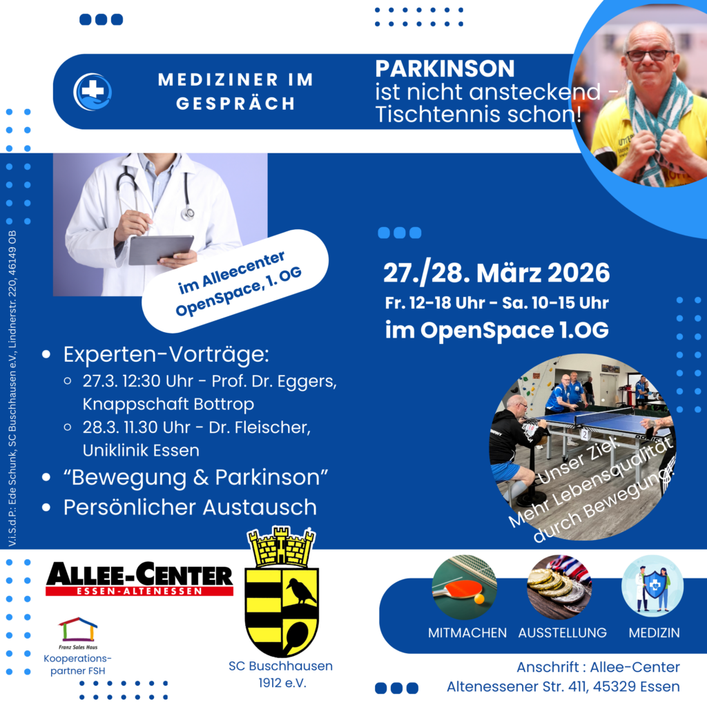 Aber Vorsicht: „Parkinson ist zwar nicht ansteckend – Tischtennis aber schon!“