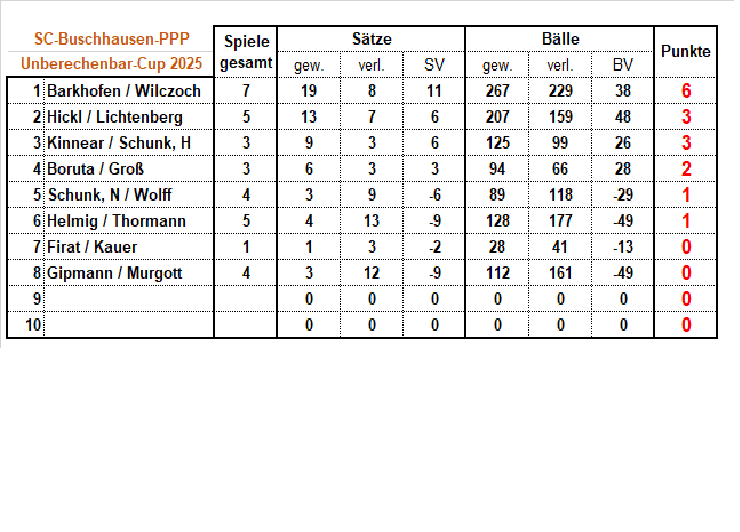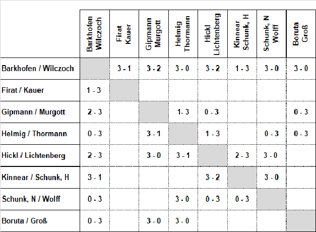 Nun haben wir begonnen, diese notwendigen Doppel in ein Turnier zu packen, das während der Traingstage bis Ende des Jahres ausgetragen werden sollen!